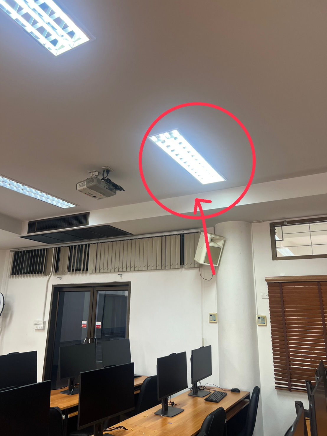| 2 | 1757321100 08/09/2568 15:45 น. | ดำเนินการ | ดำเนินการเปลี่ยนหลอดไฟยาว จำนวน 2 หลอด สามารถใช้การได้ปกติ | พนักงานช่าง |